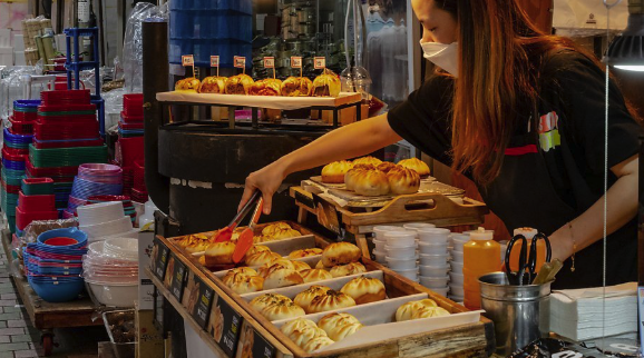 4. 푸드코너 탐방: 시장 내 푸드트럭과 간이 음식점에서 판매하는 전복죽, 흑돼지 꼬치, 해물파전 등 제주만의 먹거리를 꼭 맛보세요.