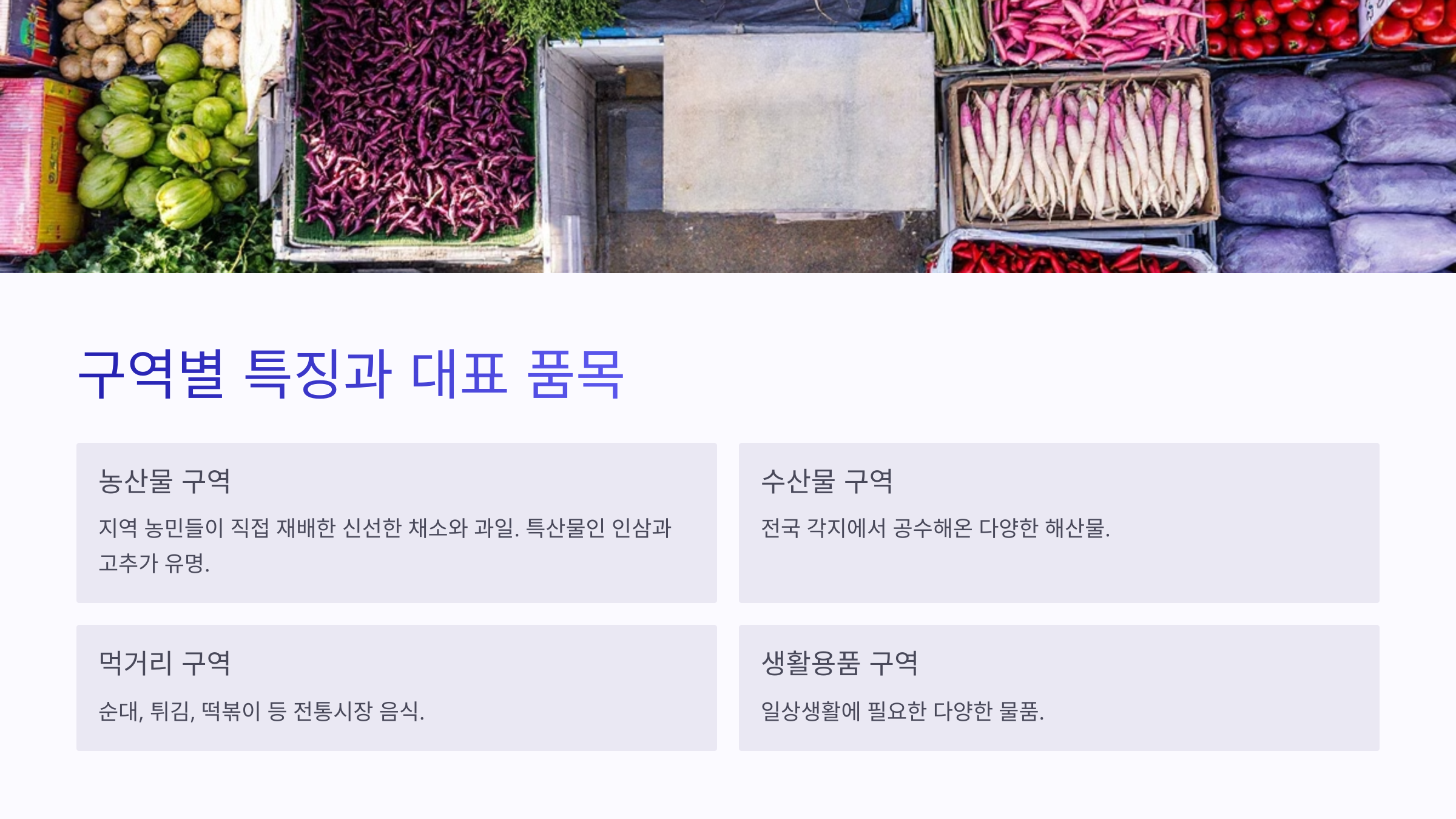 | 구역구분 | 농산물, 수산물, 먹거리, 생활용품 |