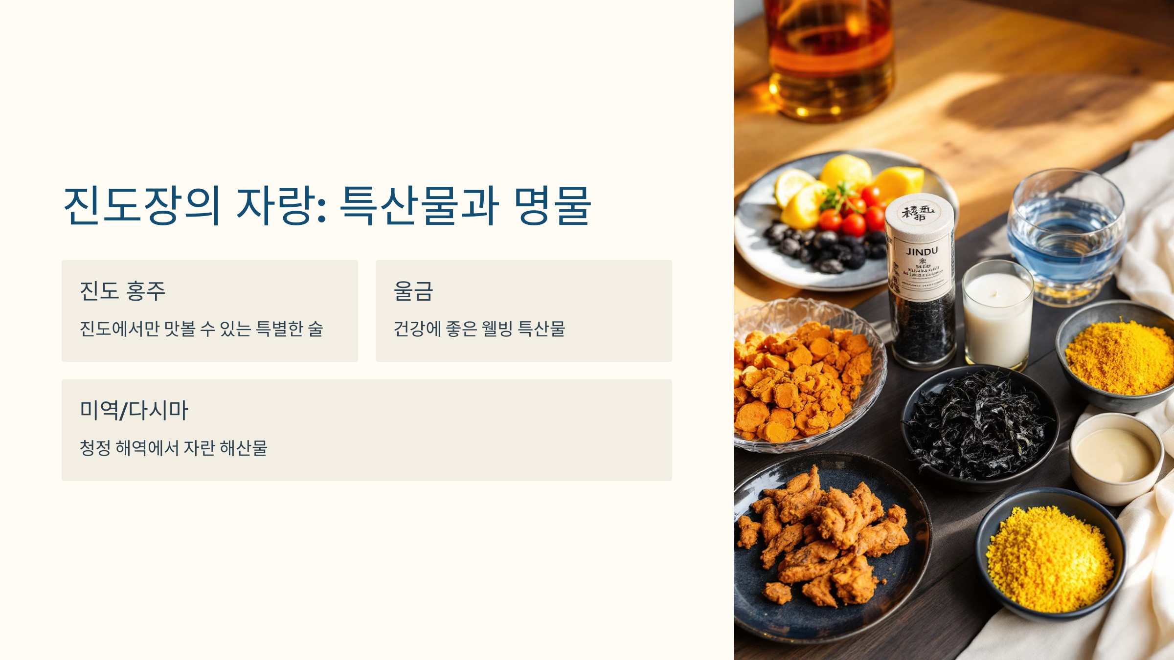 진도 오일장은 특산물의 천국이에요! 신선한 해산물, 고소한 남도 농산물, 독특한 토속 음식까지 다 모여 있어요. 방문하면 꼭 사야 할 대표적인 특산물을 소개할게요.