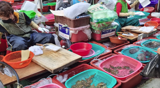 장터 한쪽에서는 창원의 전통 음식을 즐길 수 있는 공간도 마련되어 있어요. 막걸리와 함께 즐기는 빈대떡, 감자전, 그리고 신선한 해산물 요리는 창원오일장에서만 느낄 수 있는 특별한 맛이에요.