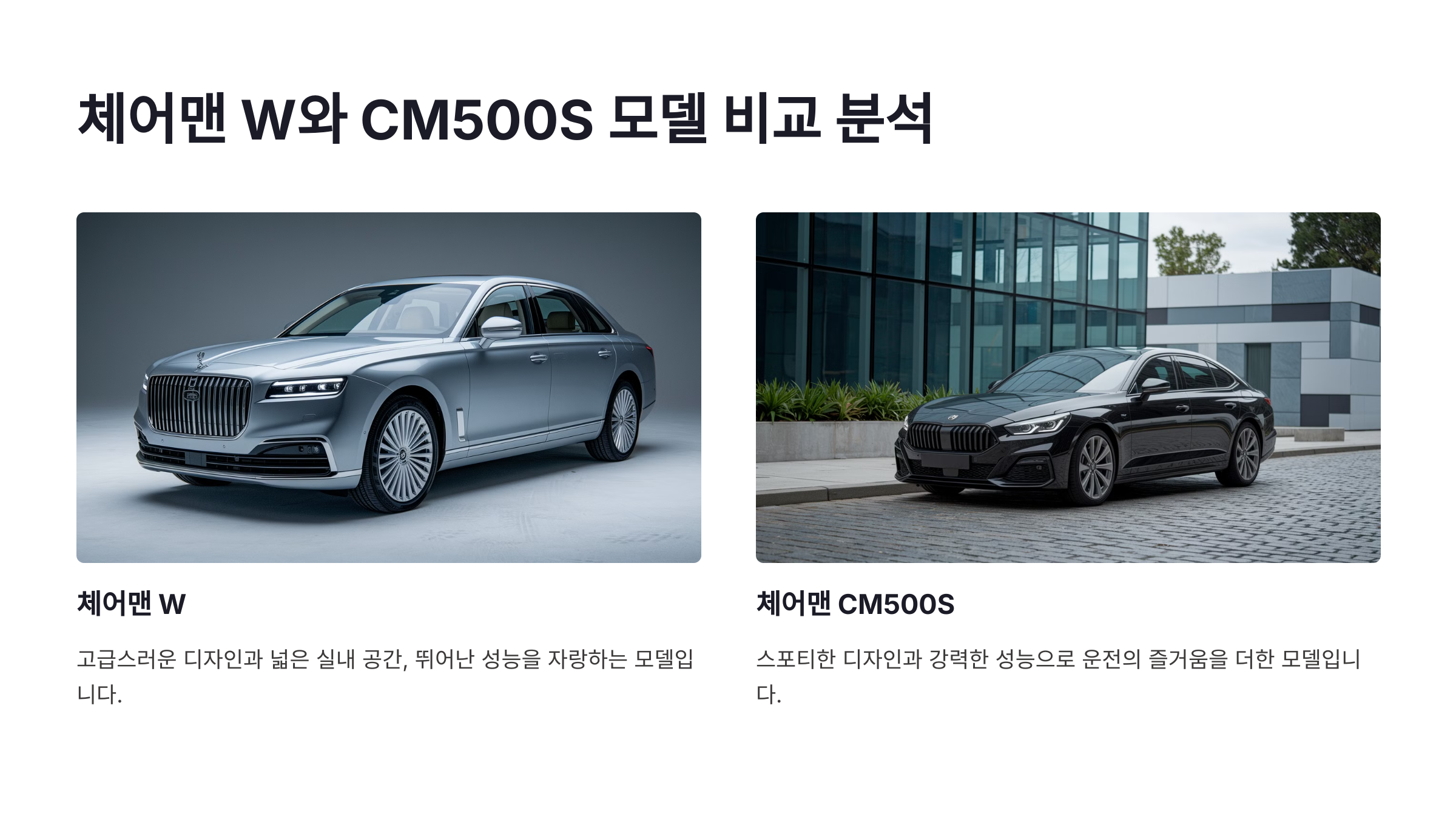 - 모델: 체어맨은 다양한 모델 라인업을 가지고 있습니다. CM400S, CM500S, W 등 모델에 따라 가격 차이가 발생합니다.