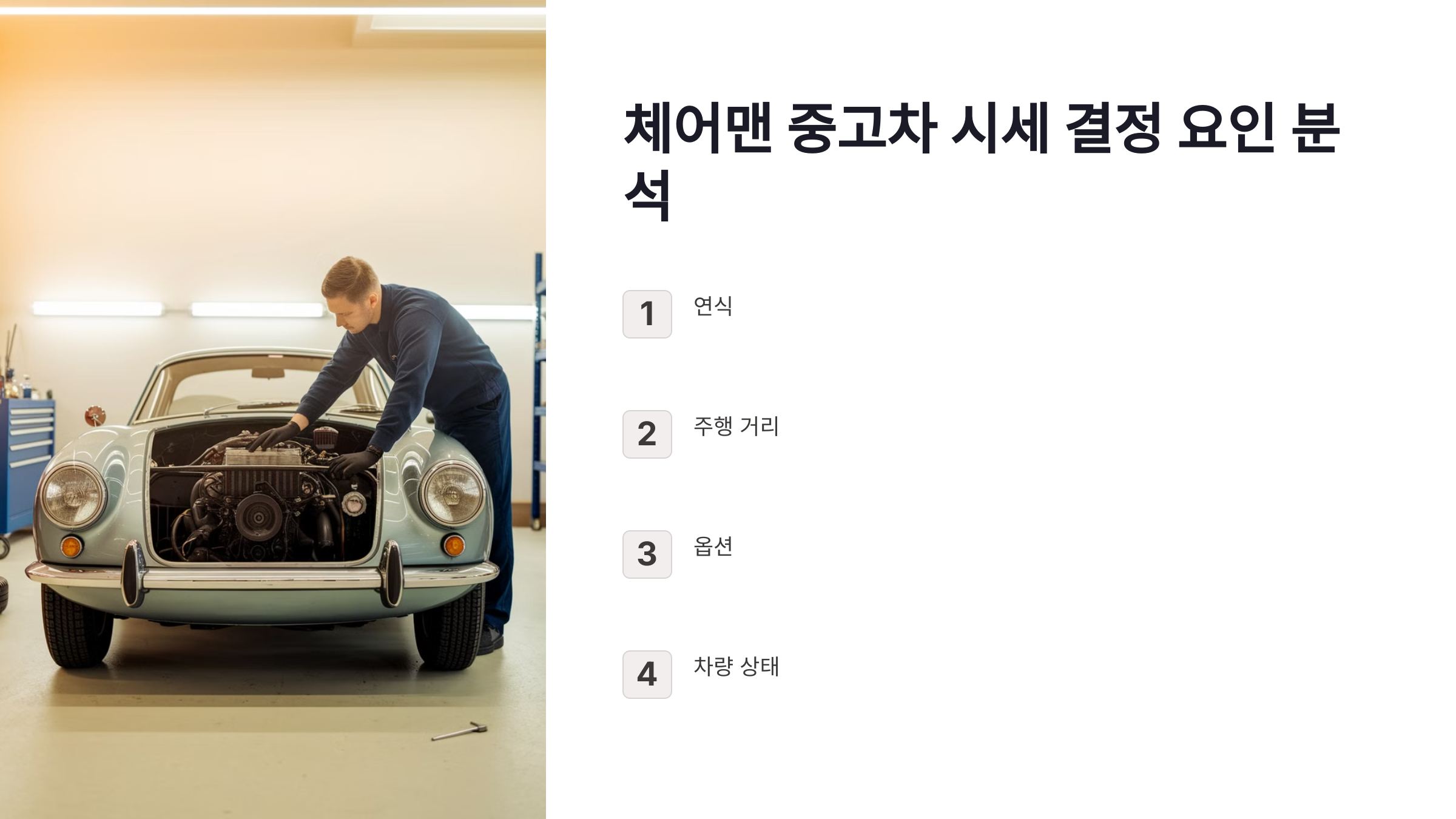 체어맨 중고차 가격은 여러 요인에 의해 결정됩니다. 다음은 주요 영향 요인입니다.