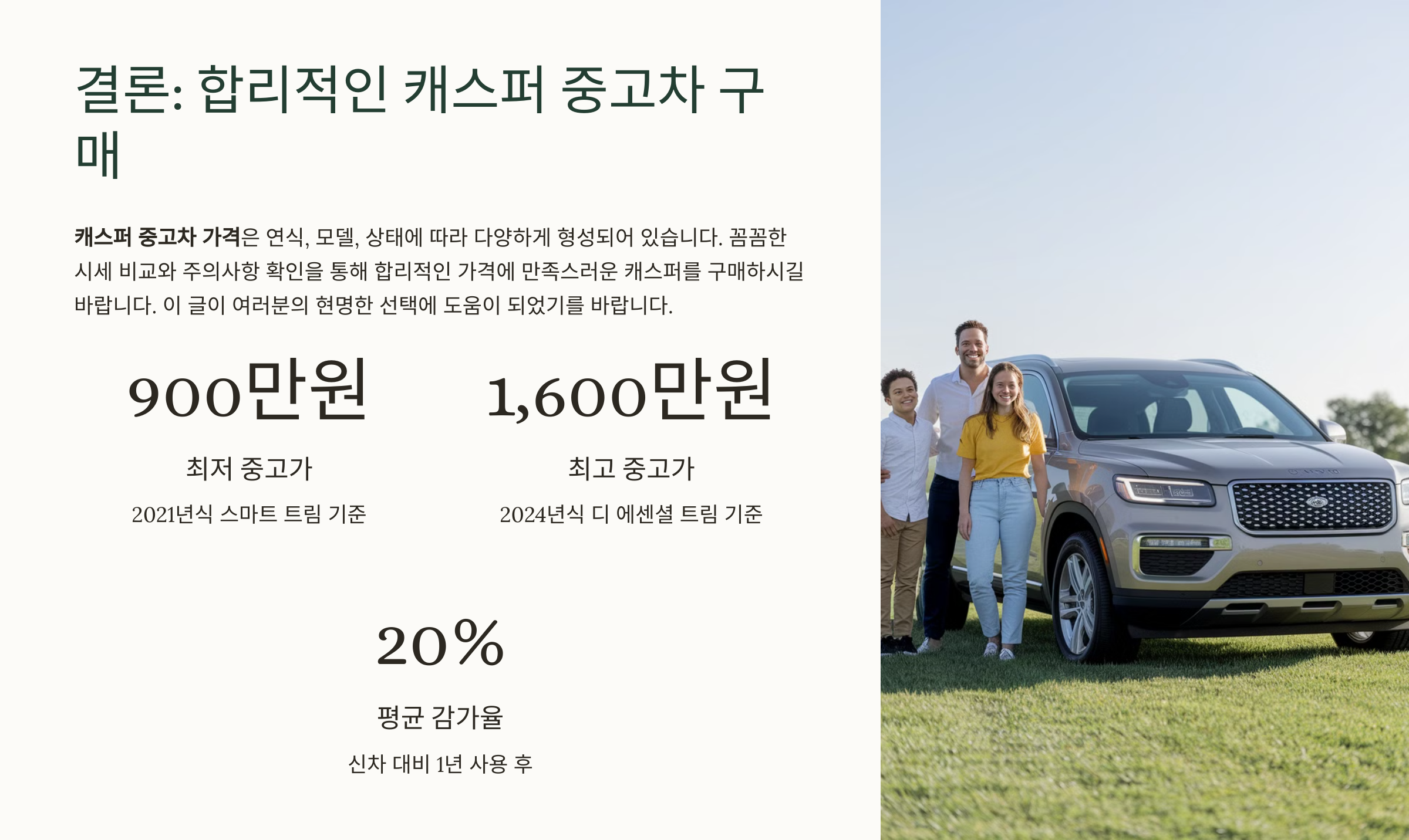 결론: 합리적인 캐스퍼 중고차 구매, 지금 시작하세요!
