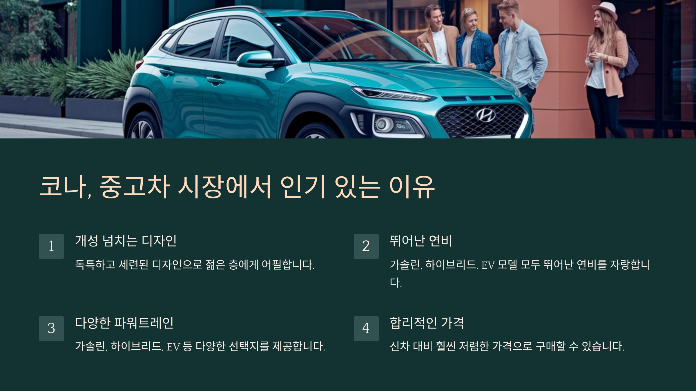 1. 코나, 왜 중고차 시장에서 꾸준히 인기 있을까?
