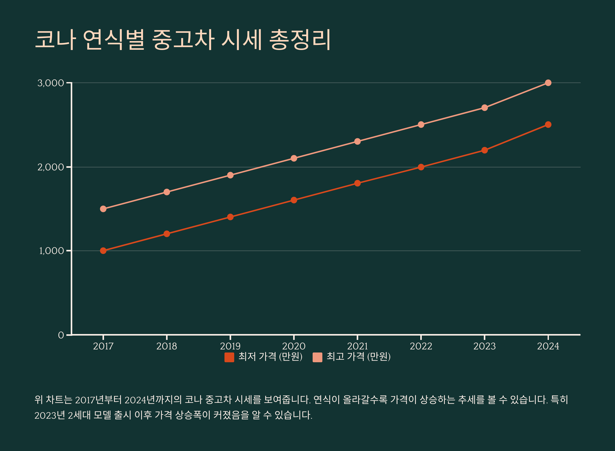 2. 코나 연식별 중고차 시세 총정리 (2017년 ~ 현재)