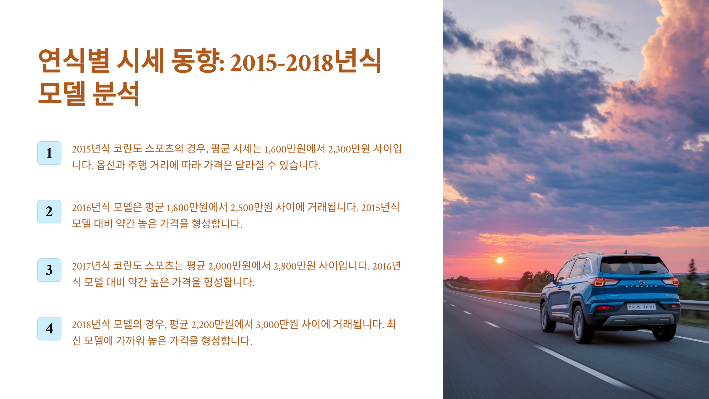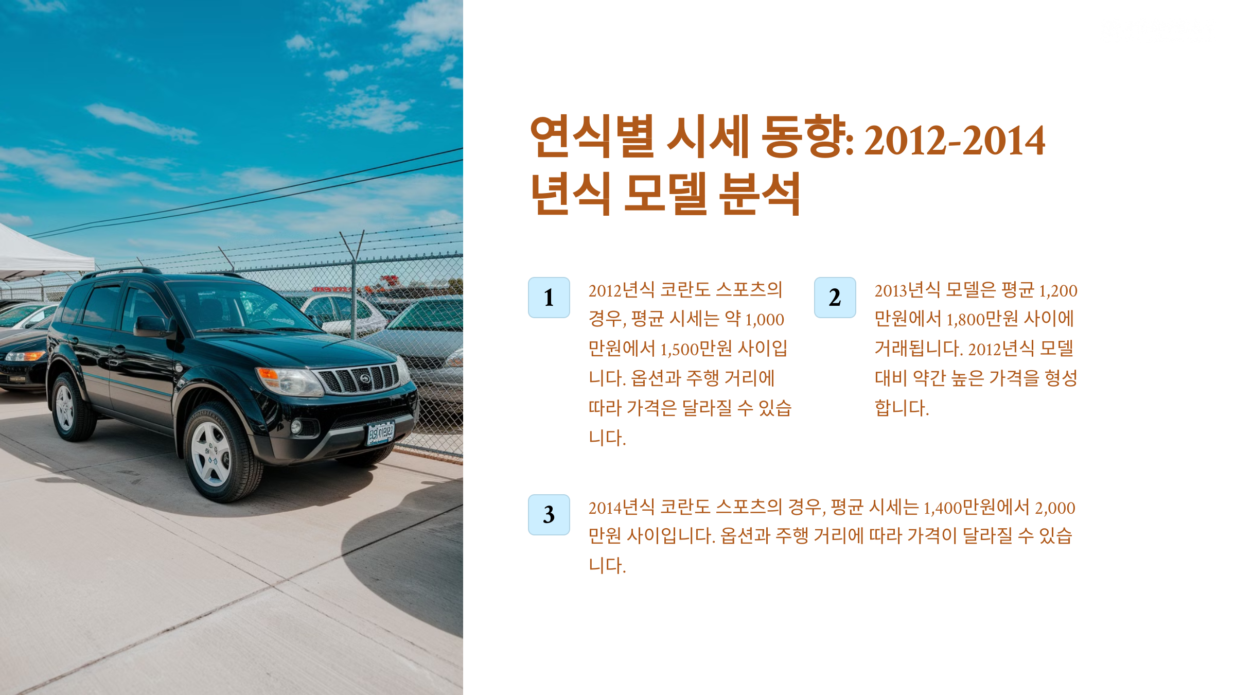 코란도 스포츠 중고차 시세, 연식별 상세 분석