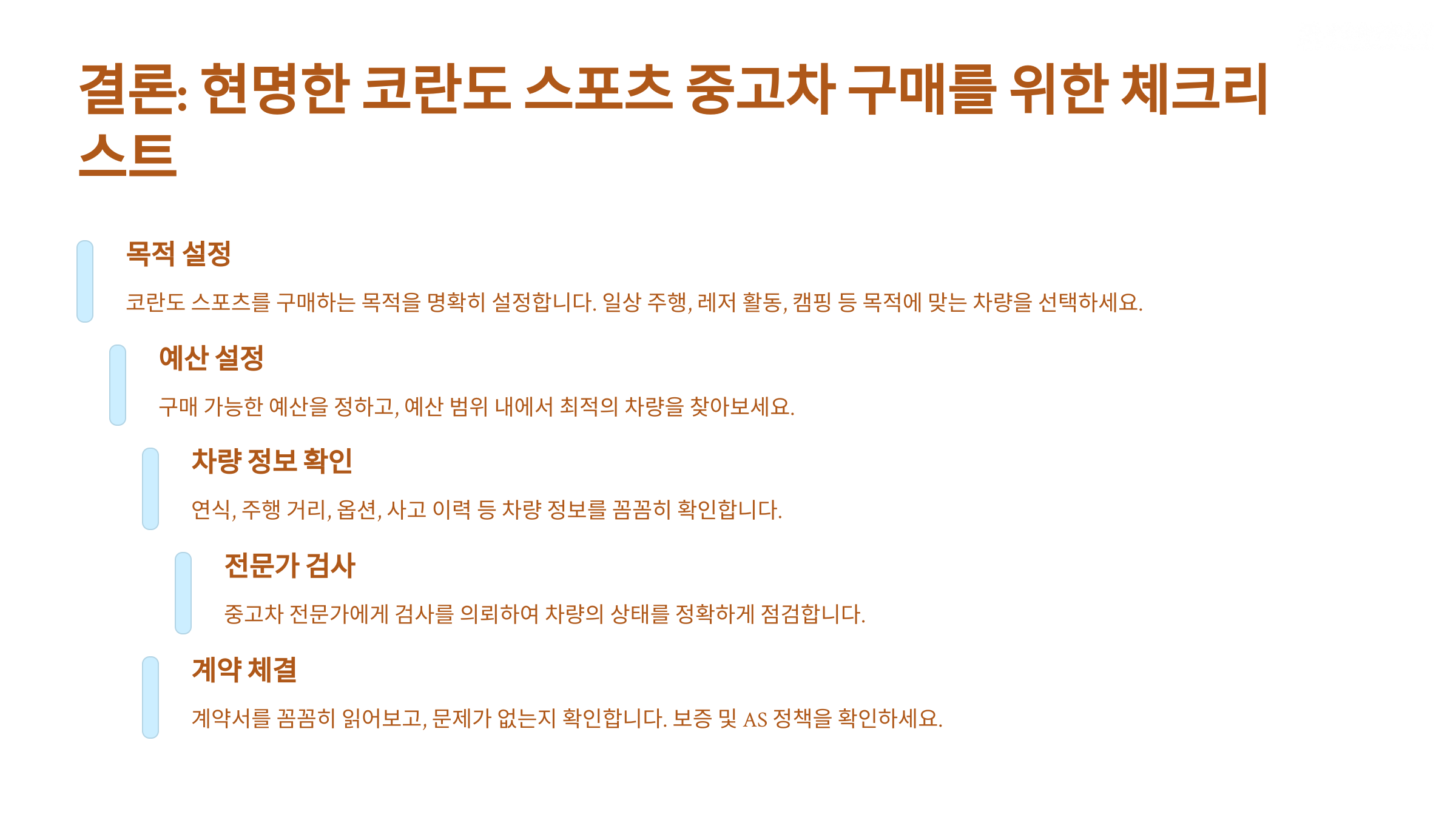 코란도 스포츠 중고차를 구매할 때는 다음과 같은 사항들을 주의해야 합니다.