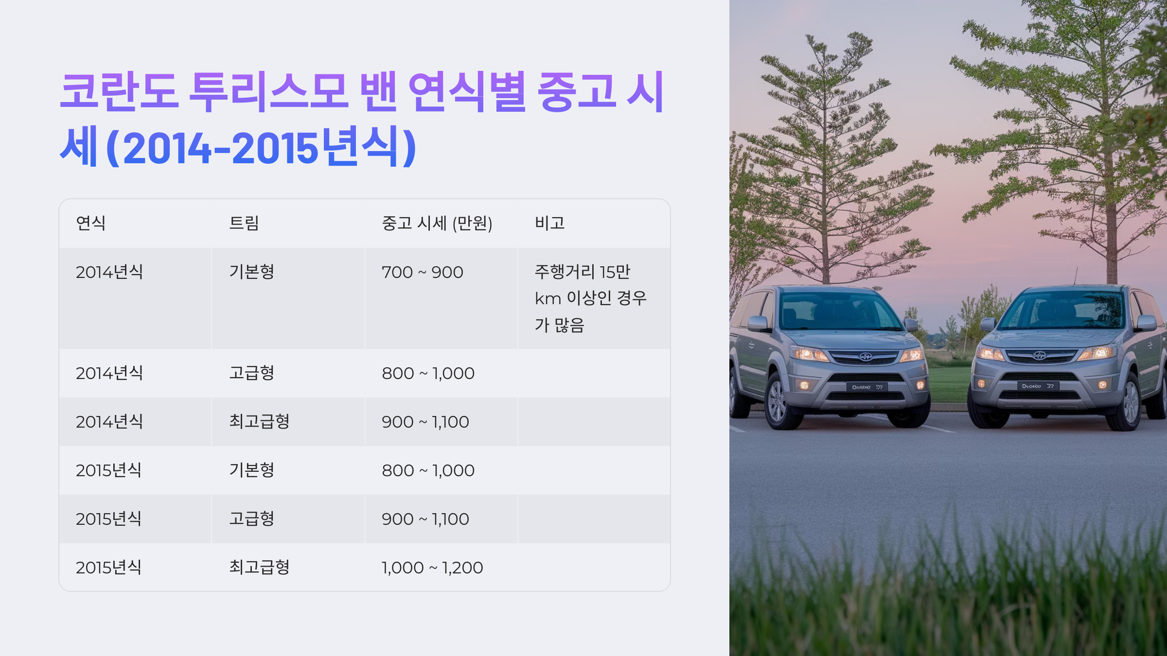 코란도 투리스모 밴 중고 시세: 연식별 상세 분석