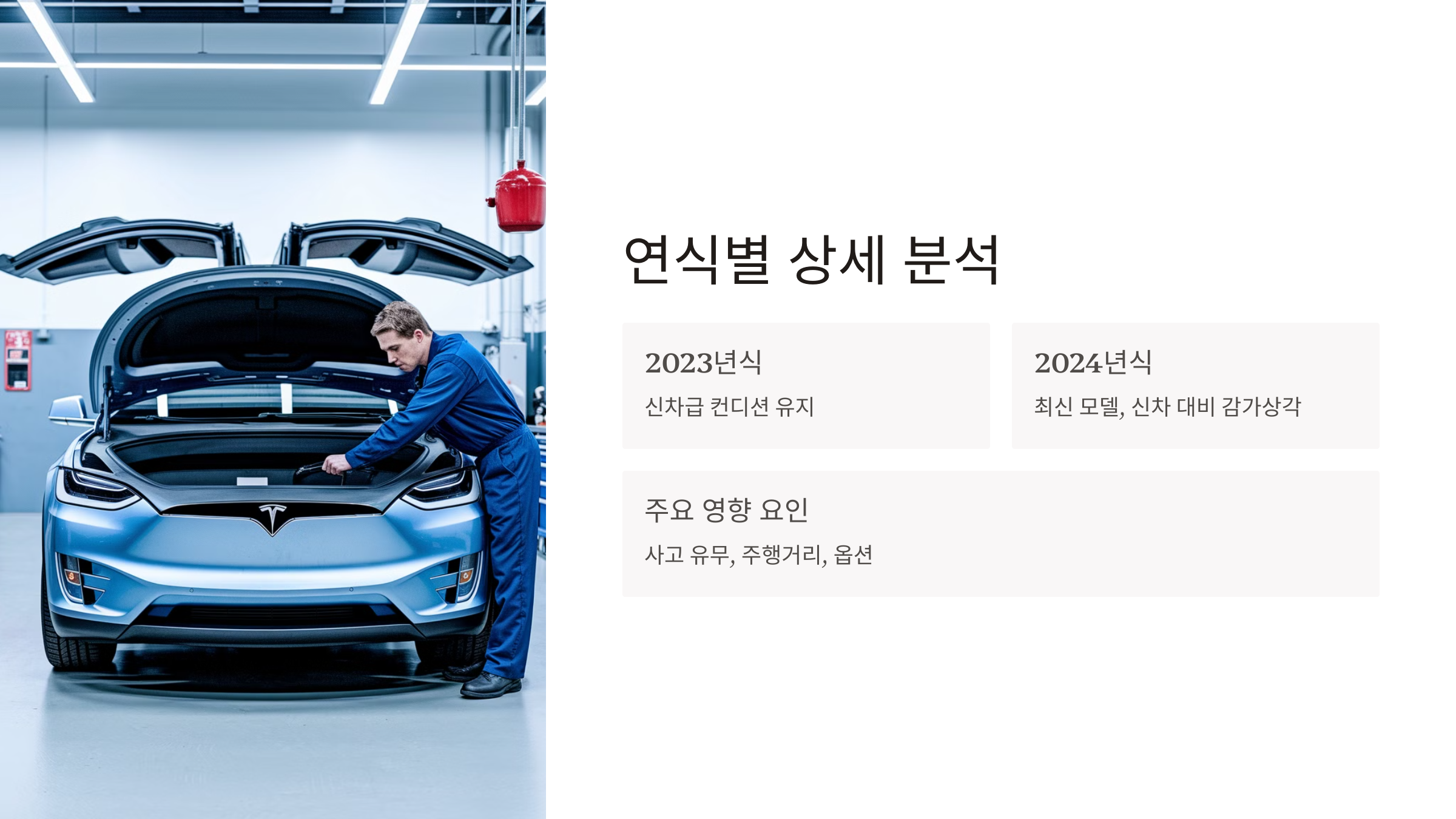 - 충전 이력을 확인하여 급속 충전 위주로 사용된 차량은 피하는 것이 좋습니다.
