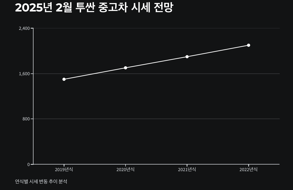 지난 몇 년간 반도체 공급난으로 인해 신차 가격이 급등하면서 중고차 가격도 동반 상승했어요. 하지만 2024년 하반기부터 공급이 안정화되면서 2025년 초 중고차 시세가 안정세를 보이고 있어요. 즉, 지금이 투싼 중고차를 구매하기 좋은 시기라고 볼 수 있어요.