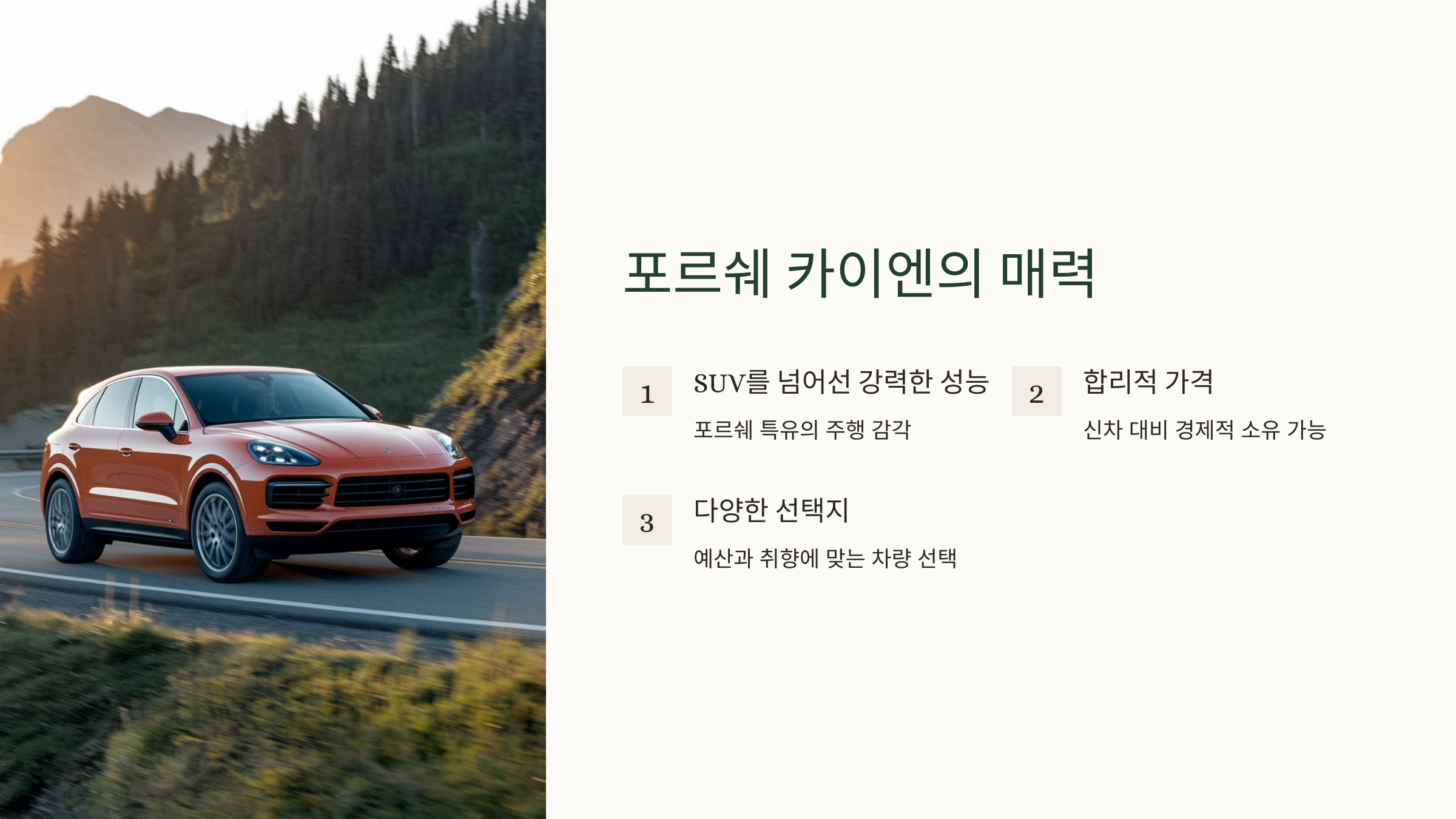 포르쉐 카이엔 중고차, 왜 매력적일까?