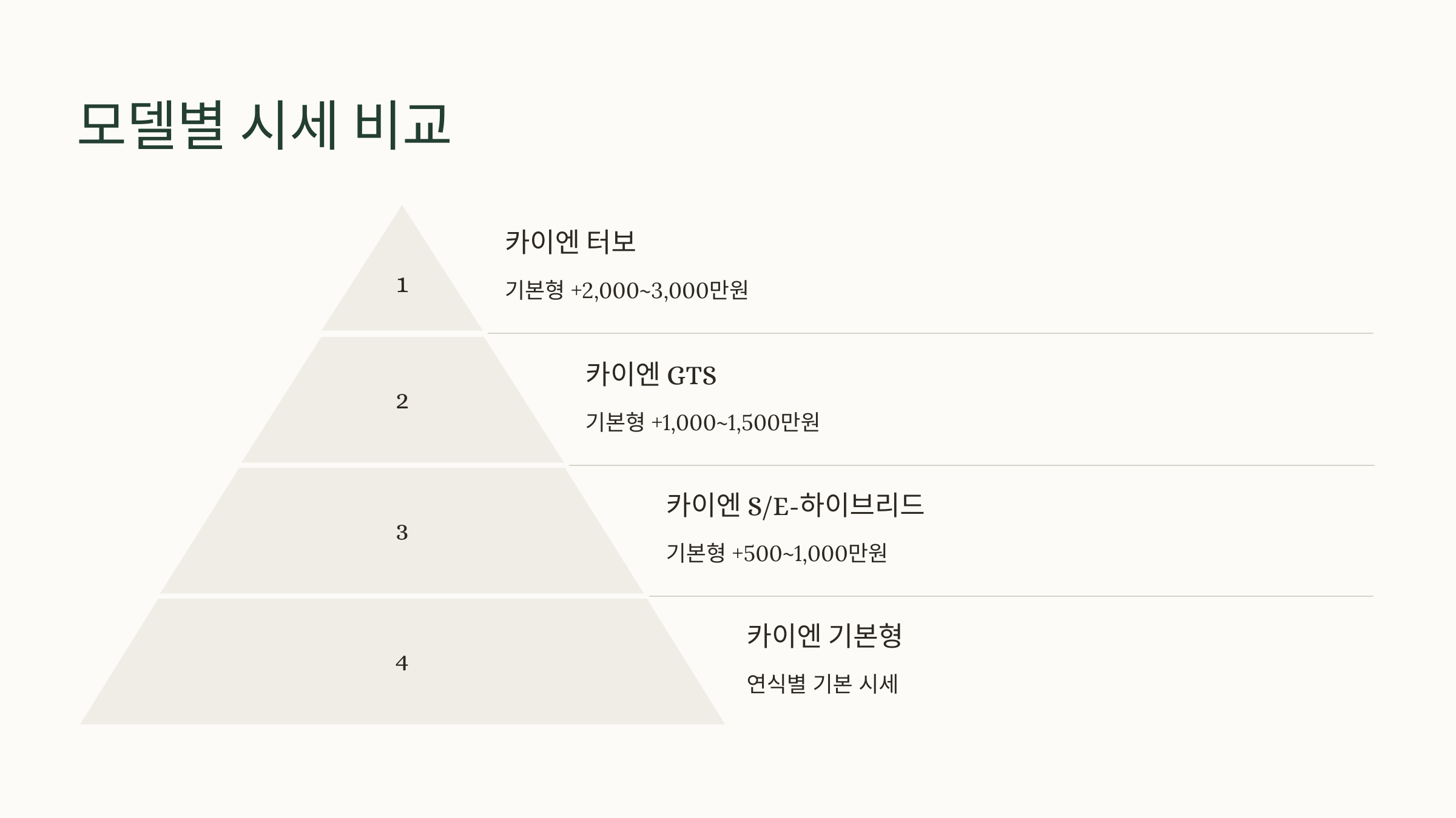 카이엔 터보 | 최상위 모델, 압도적인 성능 | 기본형 + 2,000 ~ 3,000 | |