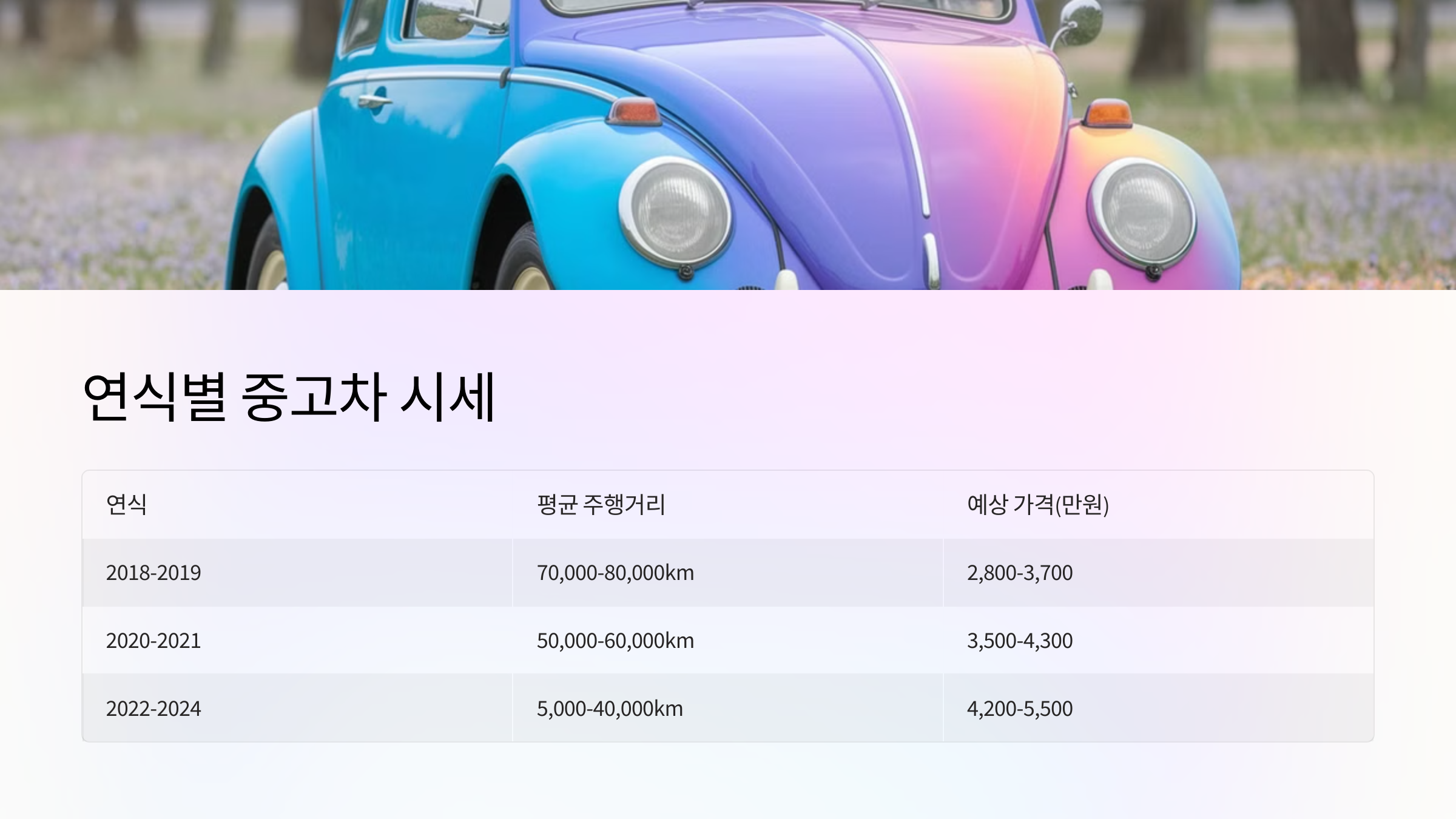 - 위 표의 가격은 참고용이며, 실제 폭스바겐 중고 가격은 차량 상태에 따라 달라질 수 있습니다.