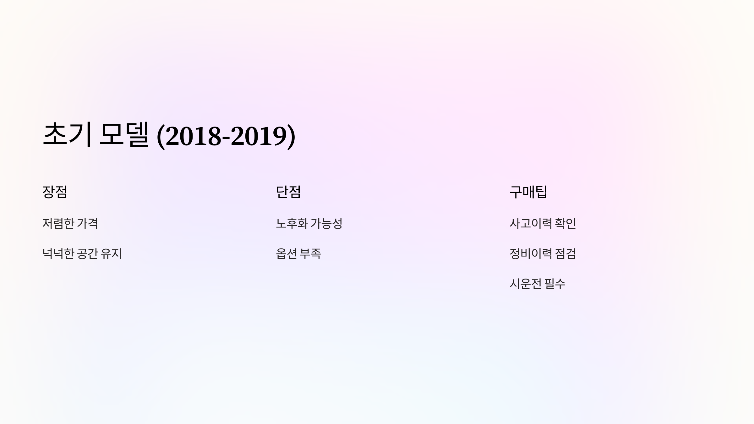 2018년 ~ 2019년식: 초기 모델의 장단점과 구매팁