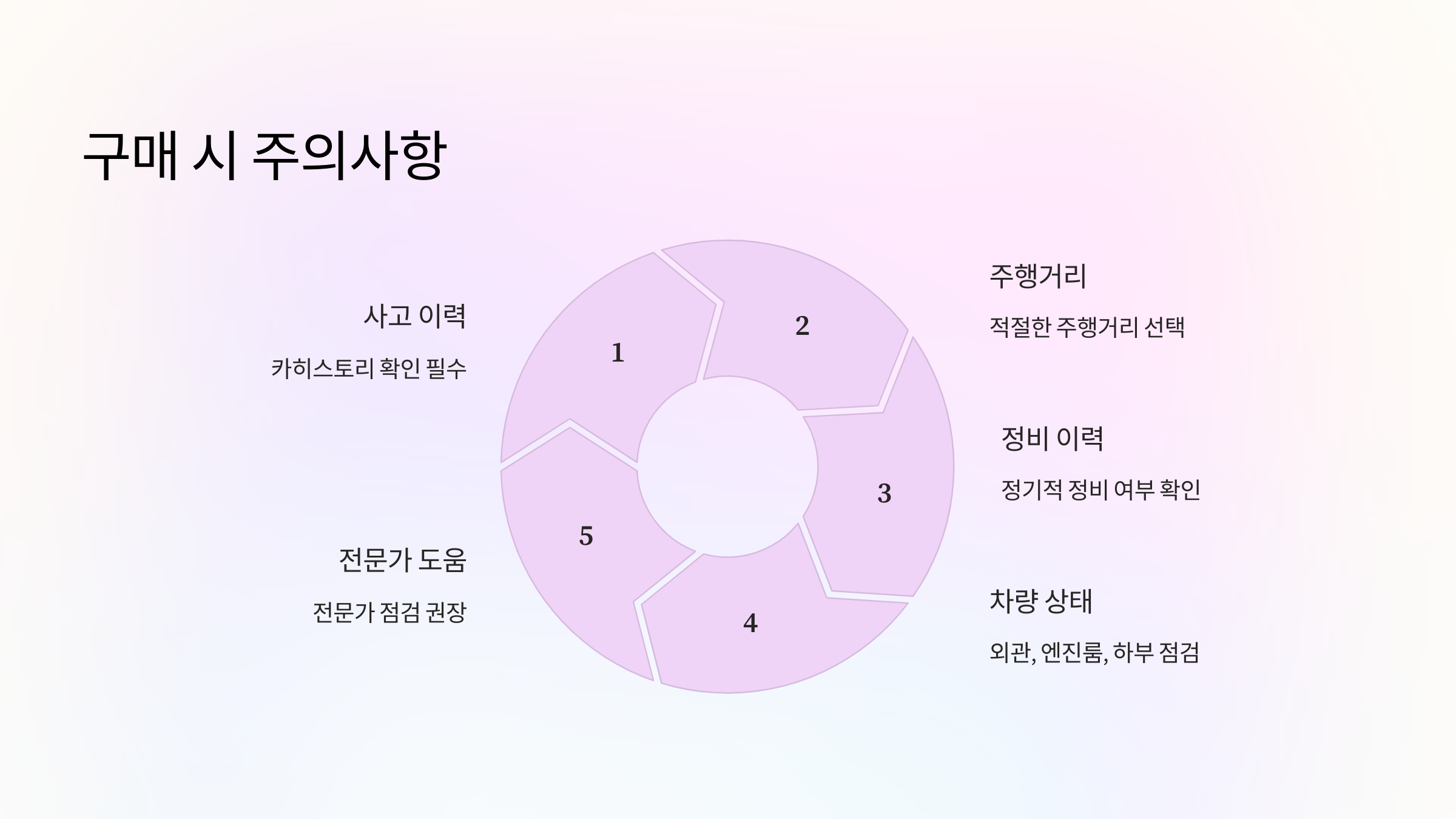 - 전문가의 도움을 받아 차량의 사고 이력이나 정비 이력을 확인하는 것도 좋은 방법입니다.