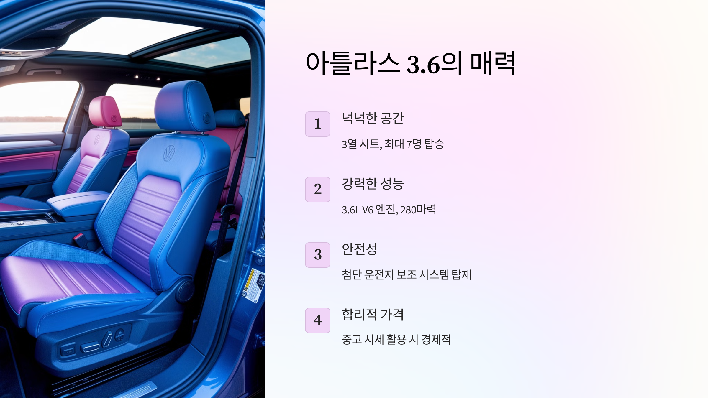 폭스바겐 아틀라스 3.6 소개: 왜 중고차 시장에서 인기가 높을까?