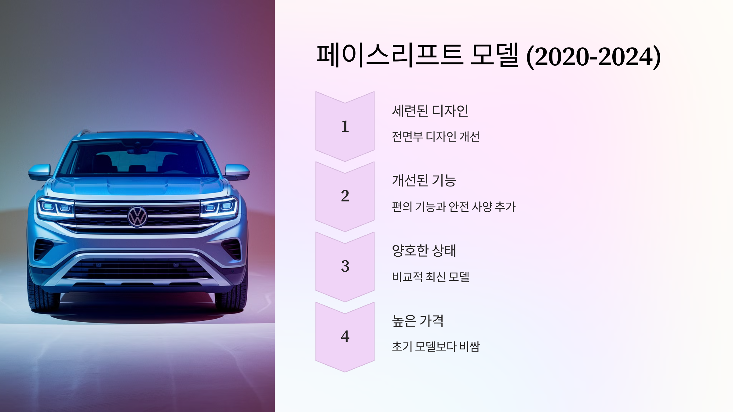 폭스바겐 중고 가격은 연식, 트림, 주행거리, 사고 유무, 차량 상태 등 다양한 요인에 따라 달라집니다. 여기서는 2018년부터 현재까지의 아틀라스 3.6 모델의 연식별 중고차 시세를 자세히 분석하고, 각 연식별 특징과 구매 시 고려해야 할 사항을 짚어보겠습니다.