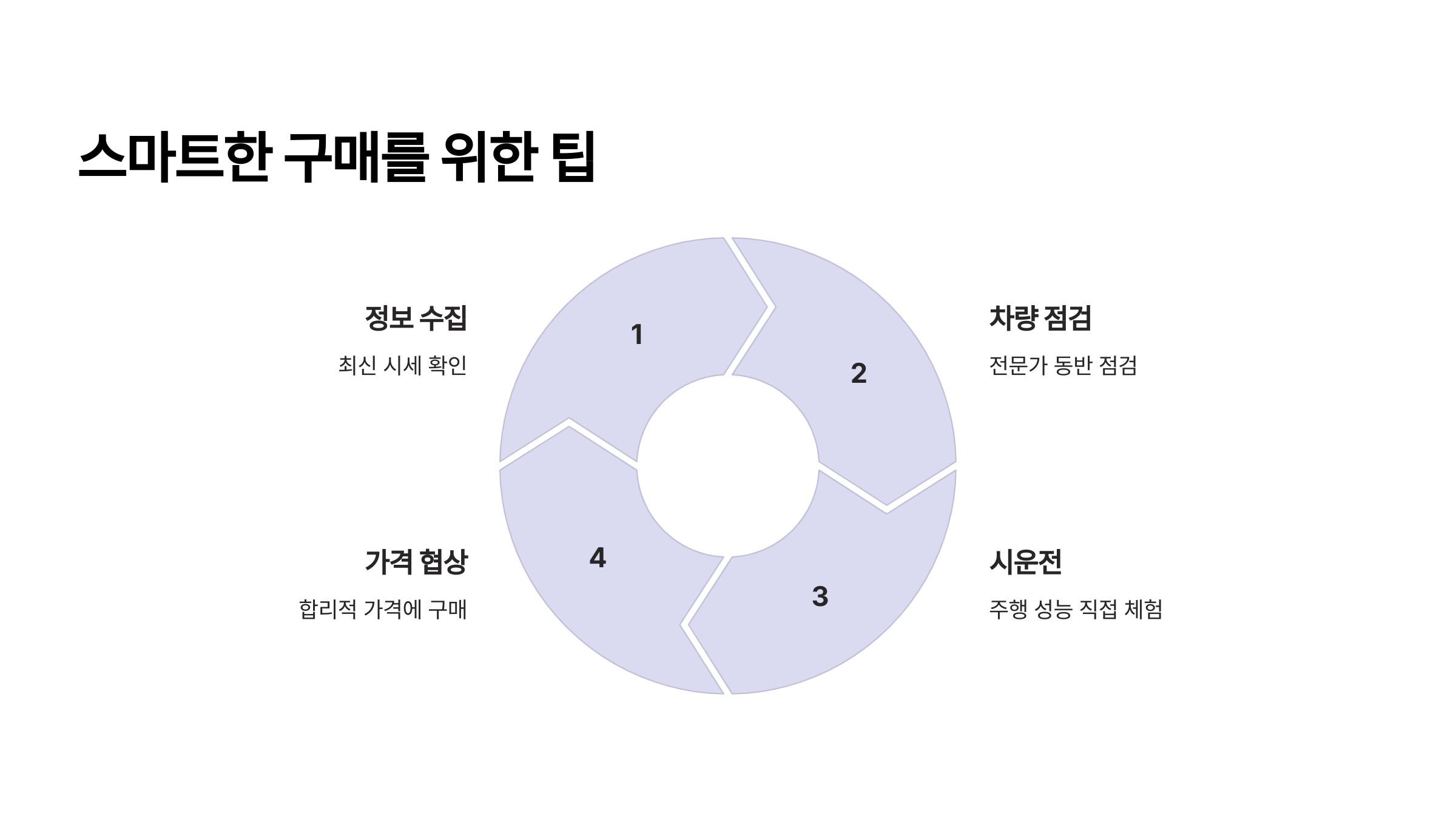 어떤 경로를 통해 구매하든, 꼼꼼하게 차량 상태를 확인하고, 시세를 비교하여 합리적인 가격에 구매하는 것이 중요합니다.