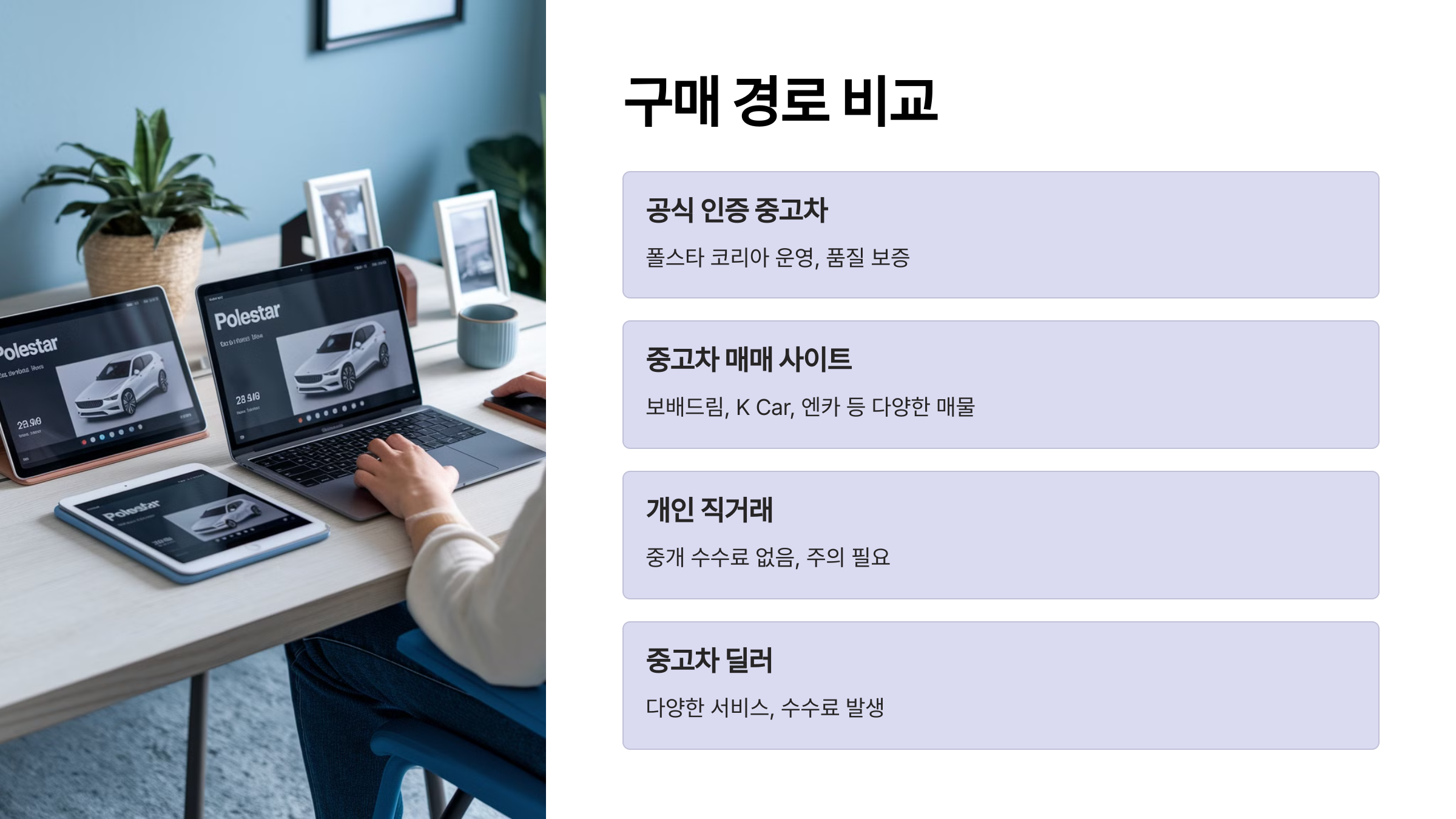 폴스타 중고차는 다양한 경로를 통해 구매할 수 있습니다.
