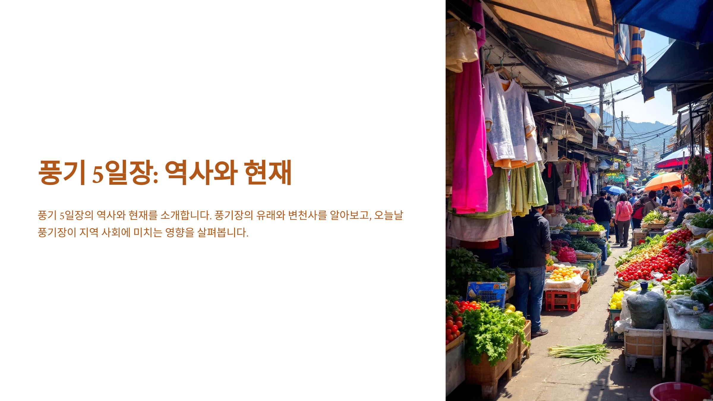 풍기 5일장은 경상북도 영주시 풍기읍에서 열리는 전통 오일장이에요. 조선 시대부터 이어져 온 유서 깊은 장터로, 지금까지도 많은 사람들이 찾는 대표적인 재래시장이랍니다.