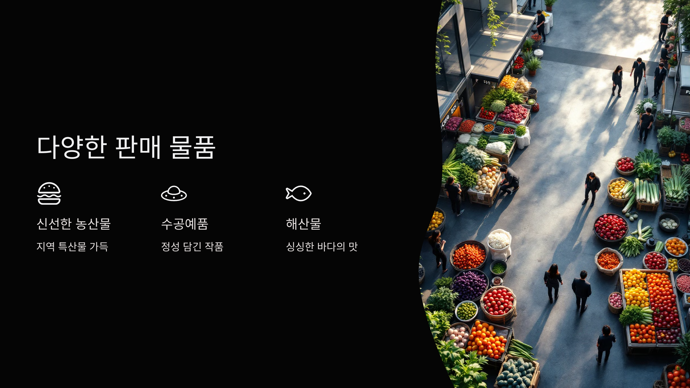 | 농민 장터 | 지역 농민들이 직접 재배한 농산물 판매 |