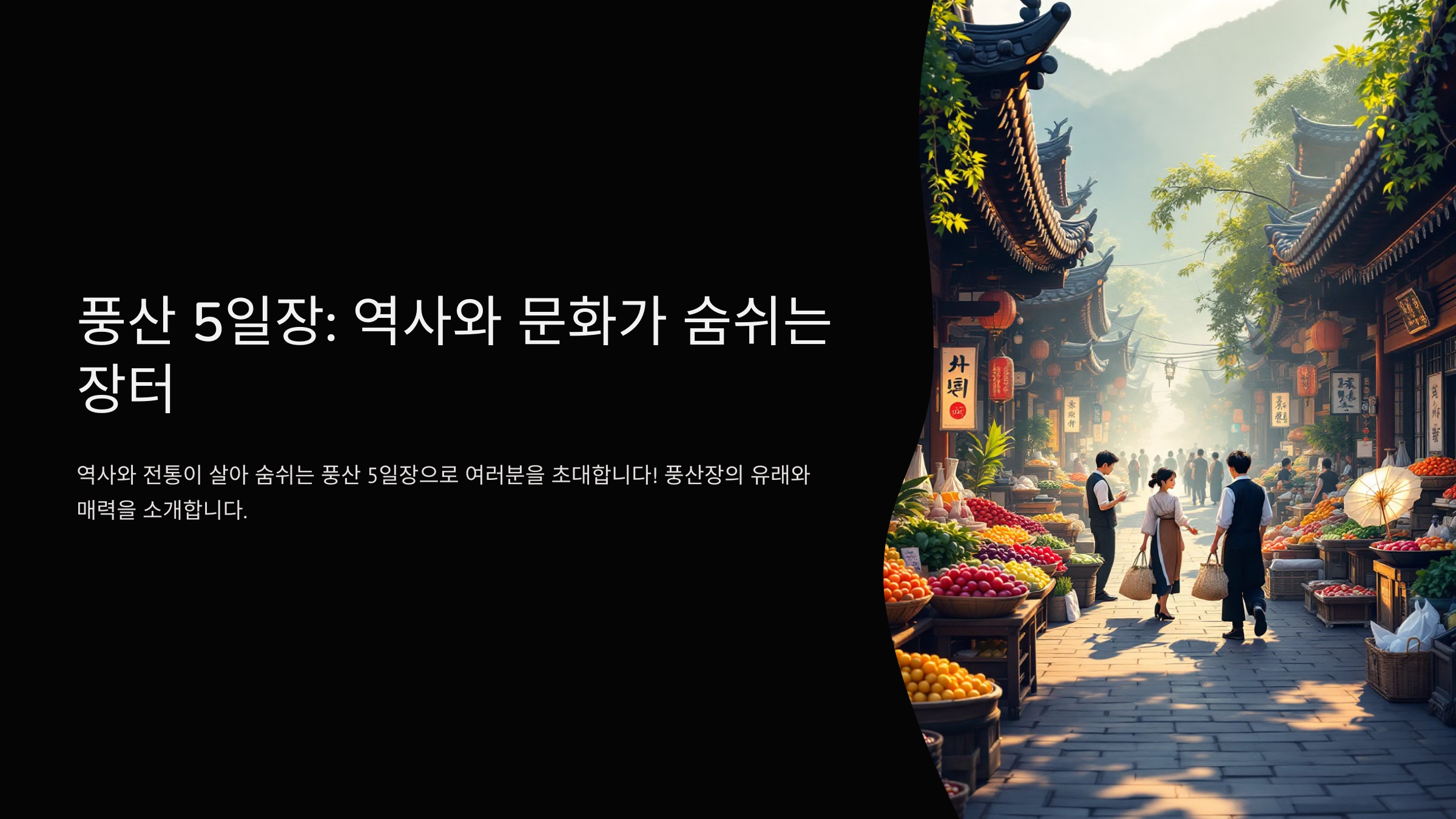 풍산 5일장은 경상북도 안동시 풍산읍에서 열리는 전통 오일장이에요. 조선 시대부터 이어져 온 유서 깊은 장터로, 현재까지도 많은 사람들이 찾는 곳이에요.