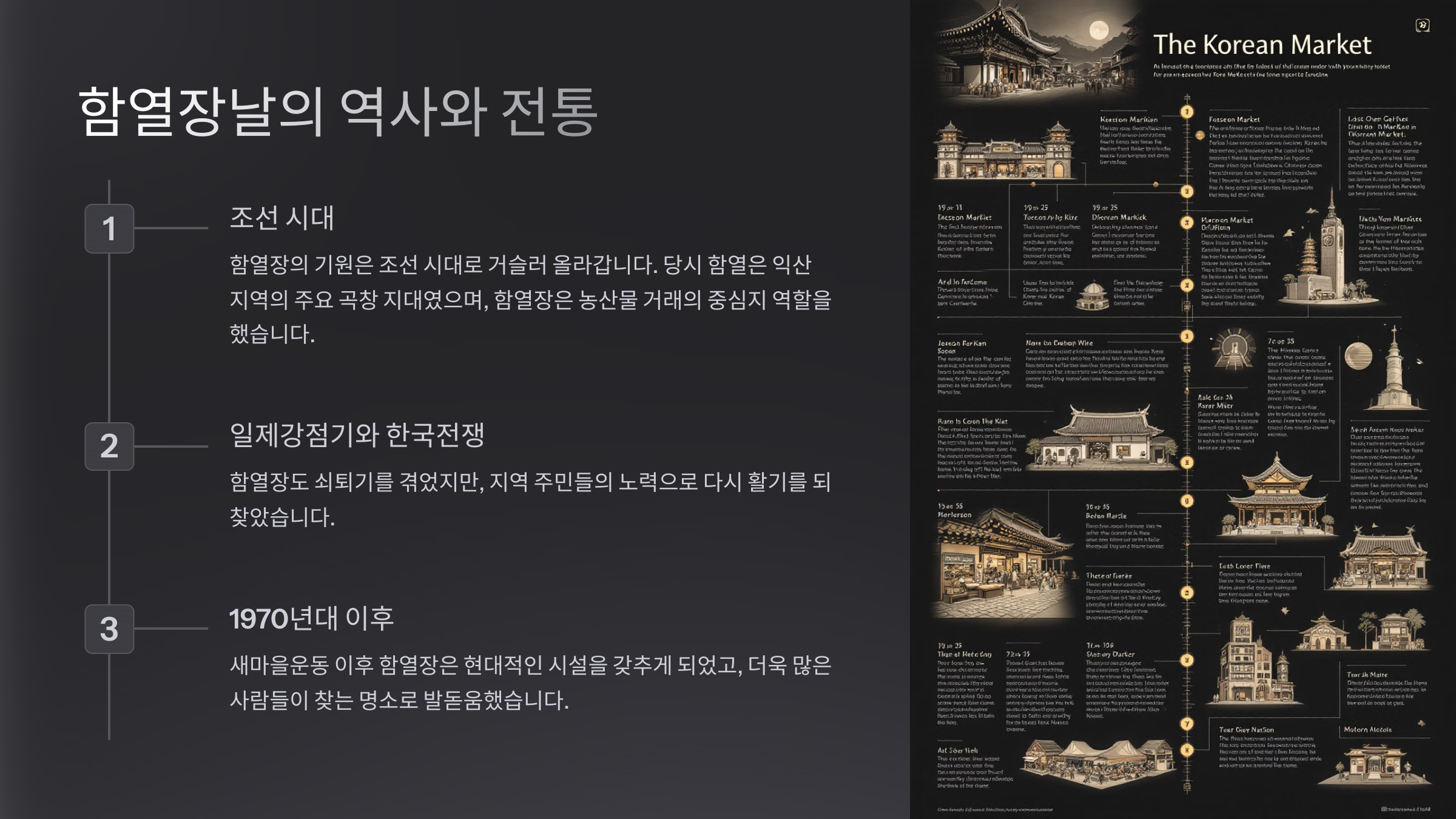요약: 함열장날은 조선 시대부터 시작된 역사 깊은 5일장으로, 지역 경제와 문화의 중심 역할을 해왔습니다. 현대적인 시설을 갖추고 지역 주민과 관광객 모두에게 사랑받는 명소입니다.