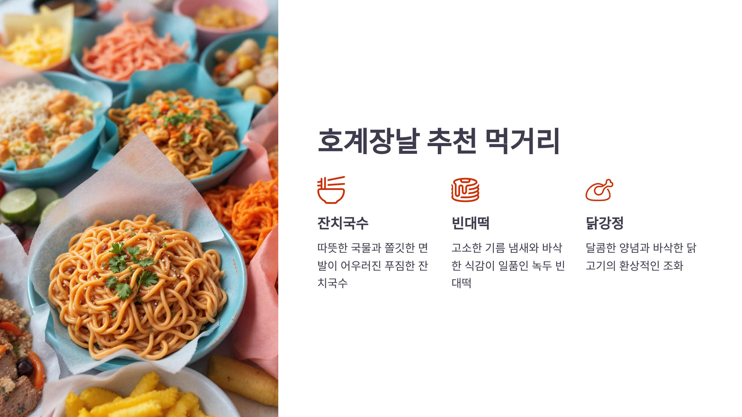 가장 먼저 추천하는 메뉴는 바로 잔치국수입니다. 따뜻한 국물과 쫄깃한 면발이 어우러져, 추운 날씨에 몸을 녹여주는 최고의 메뉴입니다. 특히, 호계장날에서 맛볼 수 있는 잔치국수는 푸짐한 양과 저렴한 가격으로 유명합니다.