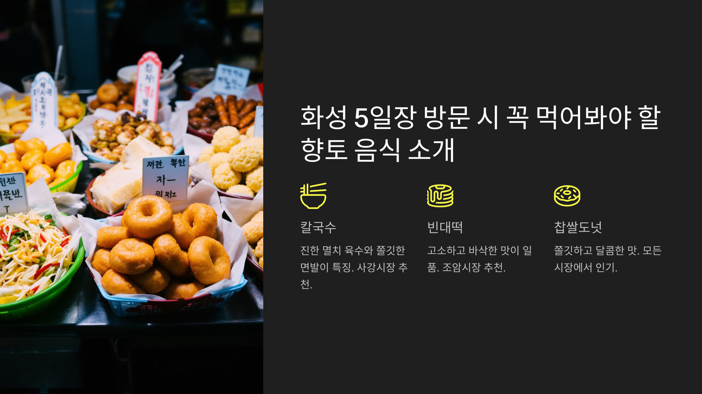4. 화성 5일장 방문 시 꼭 먹어봐야 할 향토 음식 소개
