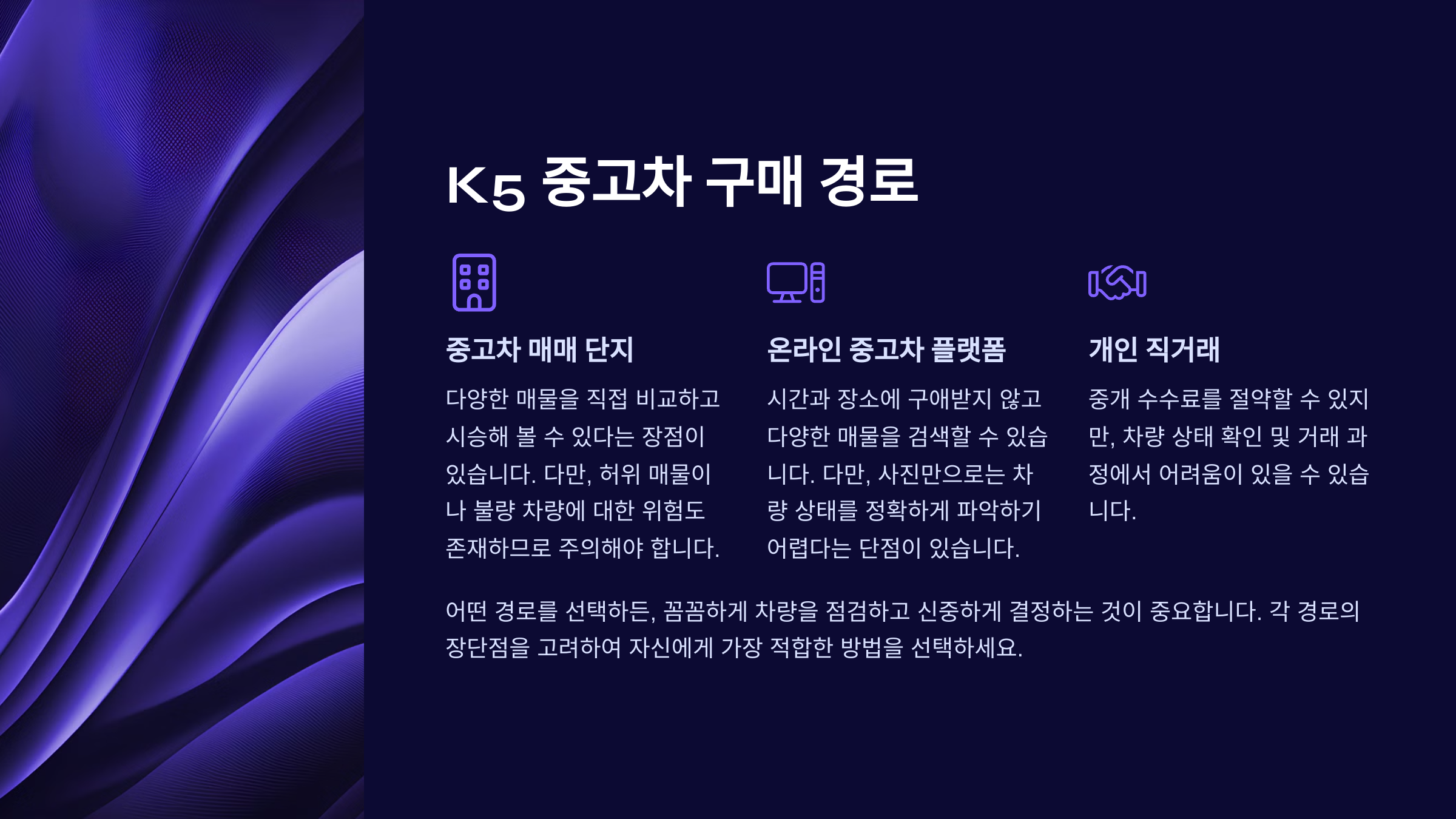 결론: 현명한 K5 중고차 구매를 위한 선택