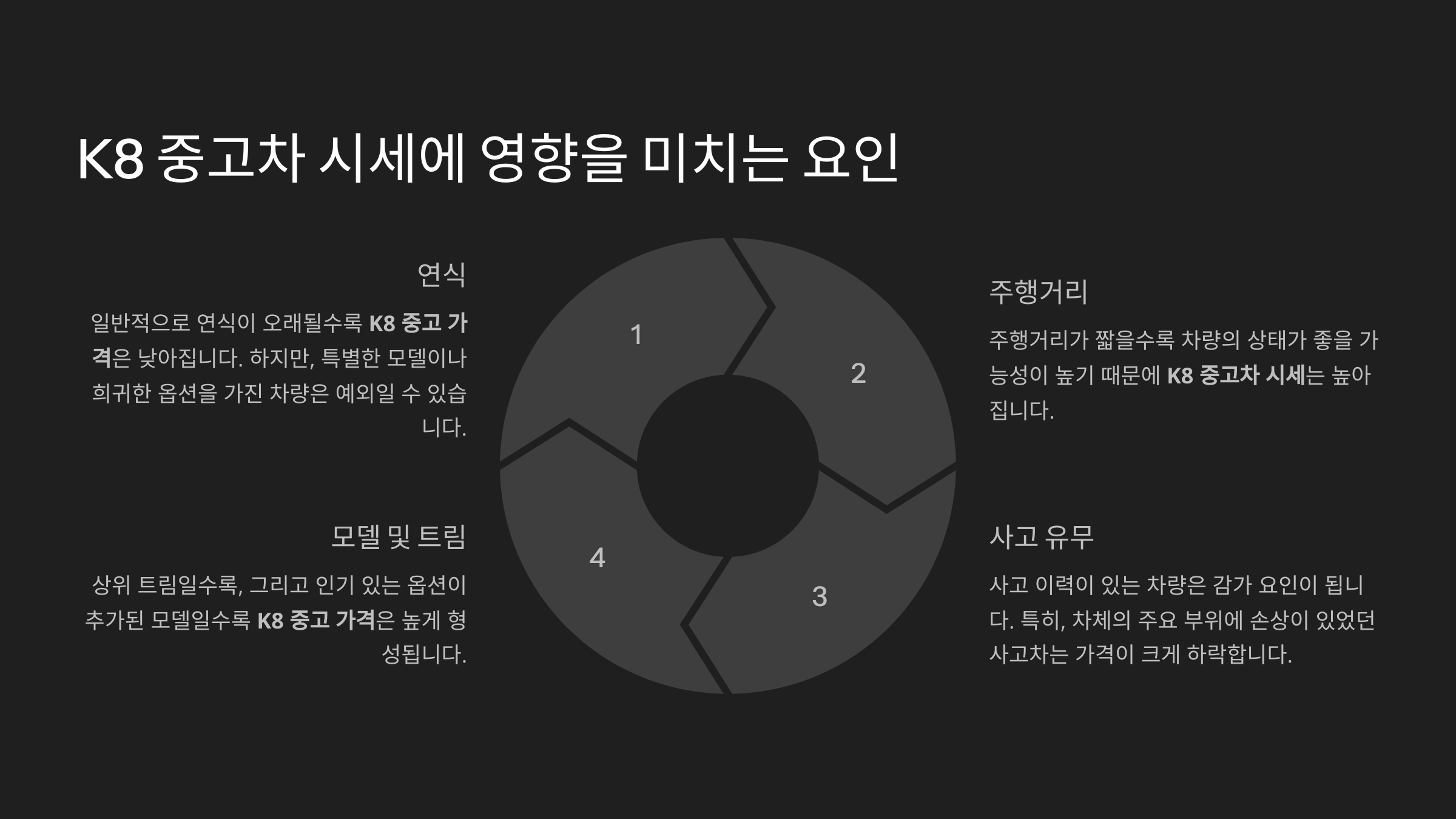 K8 중고차 시세에 영향을 미치는 요인