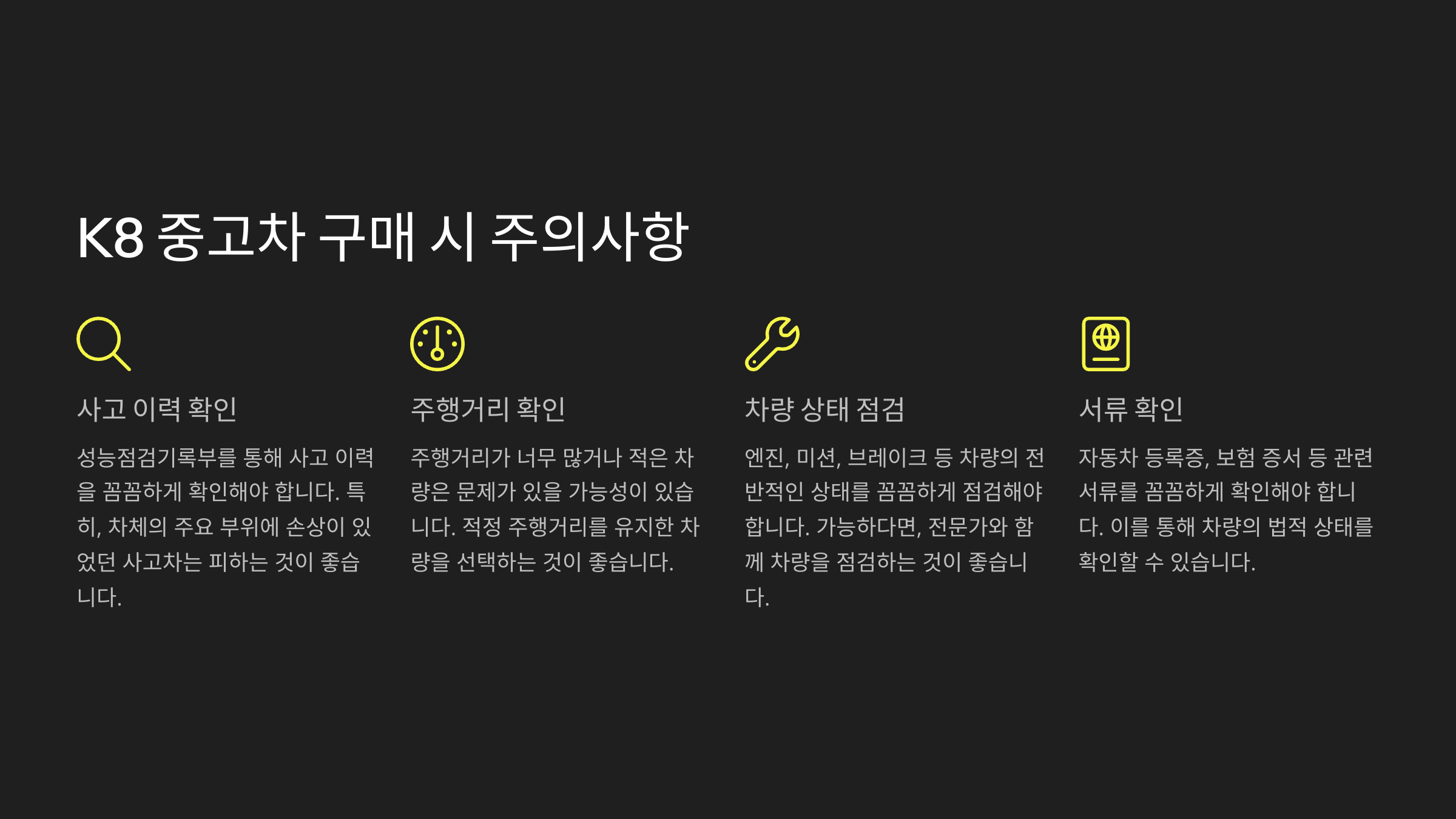 K8 중고차 구매 시 주의사항