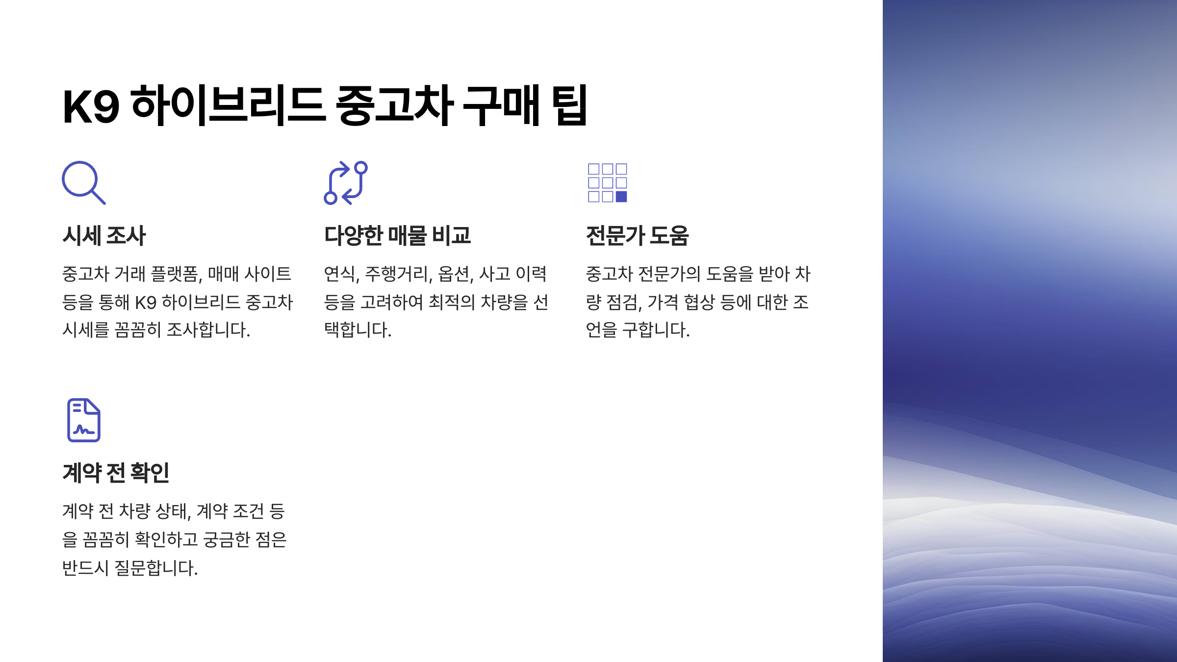 K9 하이브리드 중고차 구매 팁: 합리적인 선택을 위한 조언