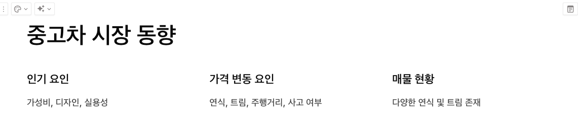아래 표에서 트림별 중고차 가격 차이를 확인해볼까요? 📊