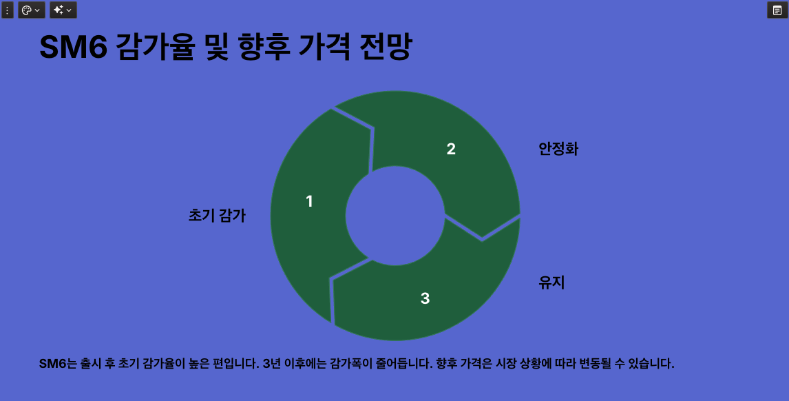 📌 다음으로 SM6의 감가율과 향후 가격 전망을 살펴볼게요!