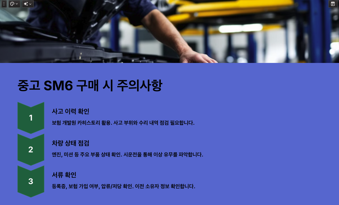 📌 이제 중고 SM6를 구매할 때 주의해야 할 점을 살펴볼까요?