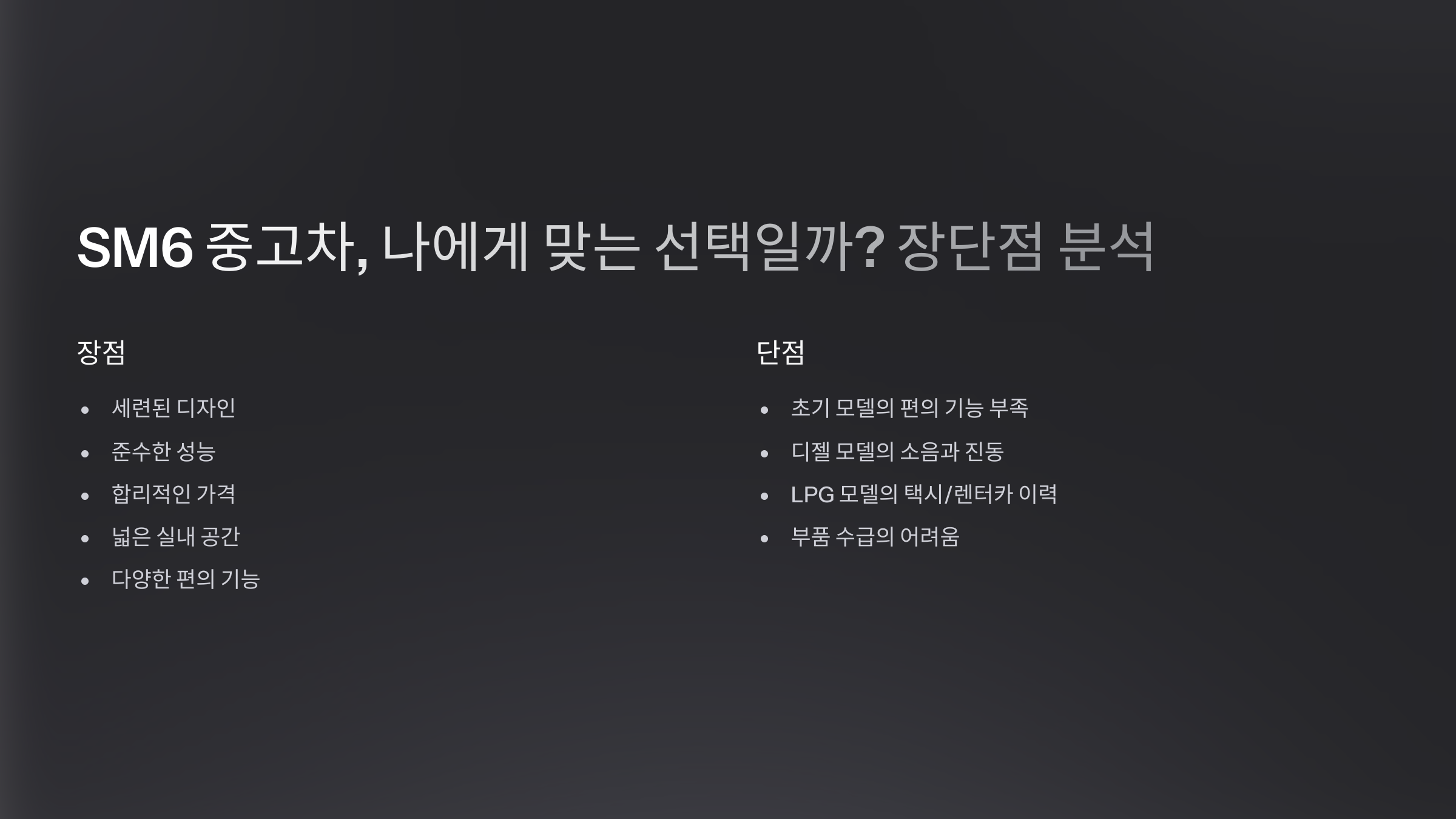 6. SM6 중고차, 나에게 맞는 선택일까? 장단점 분석