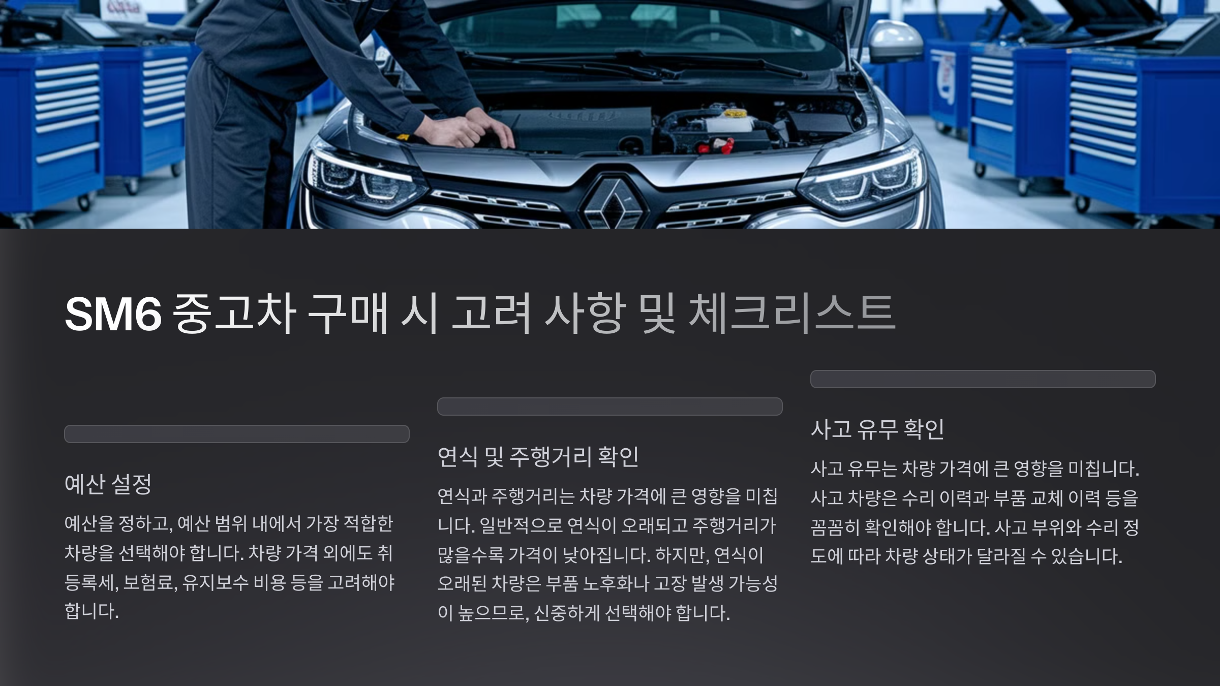 4. SM6 중고차 구매 시 고려 사항 및 체크리스트