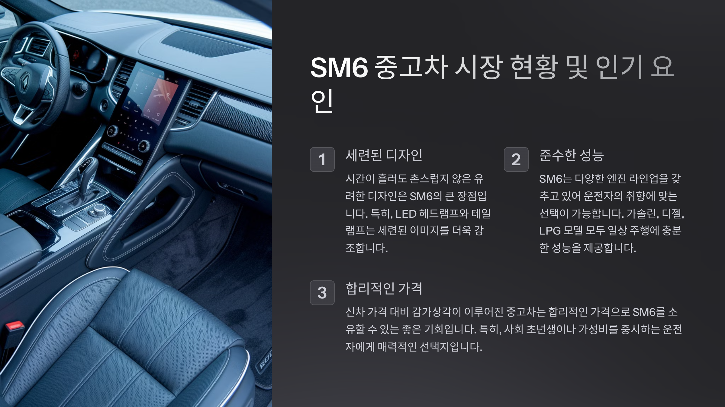 SM6가 중고차 시장에서 인기를 끄는 요인은 다음과 같습니다.