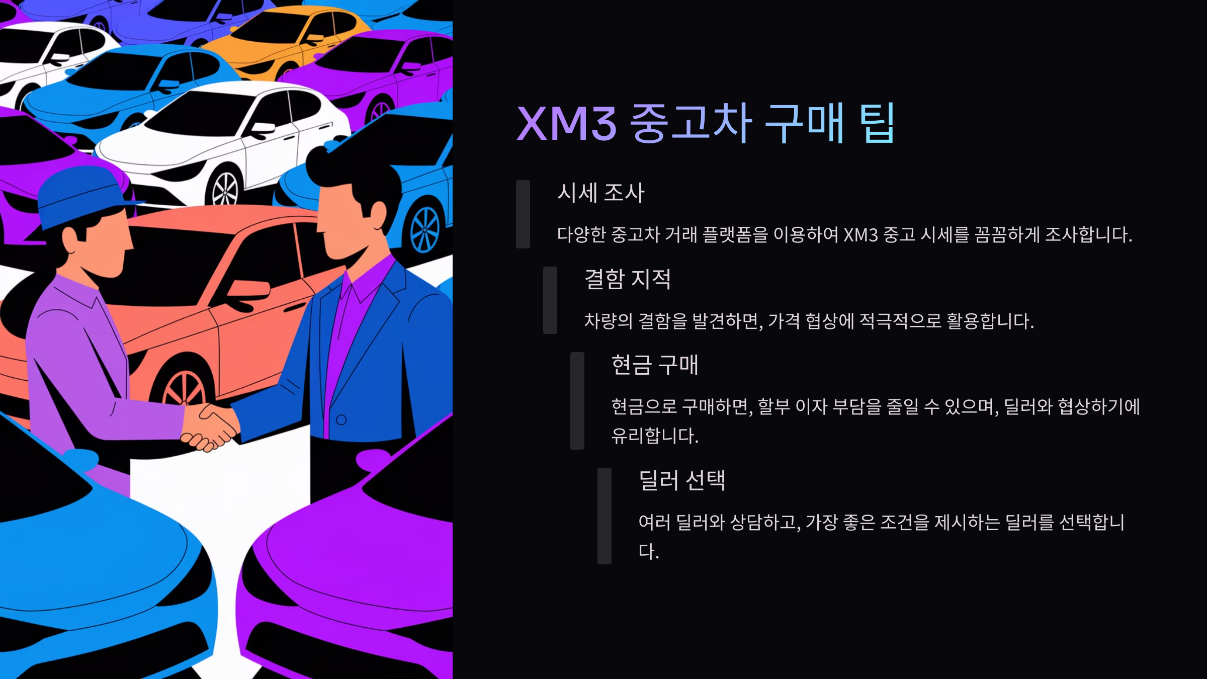 5. XM3 중고차 구매 팁: 숨겨진 감가 요인과 현명한 협상 전략